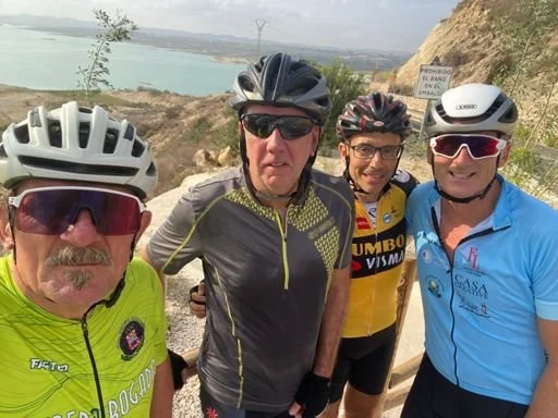 Welcome back to the club rides Simon K & Mark, joining Manuel & myself on one of my favourite routes. A nice ride up to Vistabella for our pit stop, then heading around the Embalse to Rebate where Manuel, who had his nose in the wind all day, missed the left turn & whizzed onward. I’m pleased to say that after a phone call, he carried on solo, arrived home safe & sound & wins the combativity award for today, which includes a voucher for Bonaire Vision our brilliant optician sponsor in Sucina Thanks guys for a super day, excellent company & I look forward to seeing you on Friday when the “Iron Man Legend” that is Andrea Campbell returns to the fold. HappyDaysBienvenidos de nuevo a los recorridos del club, Simon K y Mark, que se unen a Manuel y a mí en una de mis rutas favoritas. Un agradable recorrido hasta Vistabella para nuestra parada en boxes, luego nos dirigimos alrededor del Embalse hasta Rebate, donde Manuel, que estuvo todo el día con la nariz en el viento, se perdió el giro a la izquierda y siguió adelante a toda velocidad. Me complace decir que después de una llamada telefónica, continuó solo, llegó a casa sano y salvo y ganó el premio a la combatividad de hoy, 😀🏆 que incluye un vale para Bonaire Vision, nuestro brillante patrocinador óptico en Sucina 😂 Gracias, chicos, por un día estupendo, una compañía excelente y espero verlos el viernes cuando la "leyenda de Iron Man" que es Andrea Campbell regrese al grupo. Felices Días 🇪🇸👍☀️😎🚴♂️🚴♂️🚴♂️🚴♂️